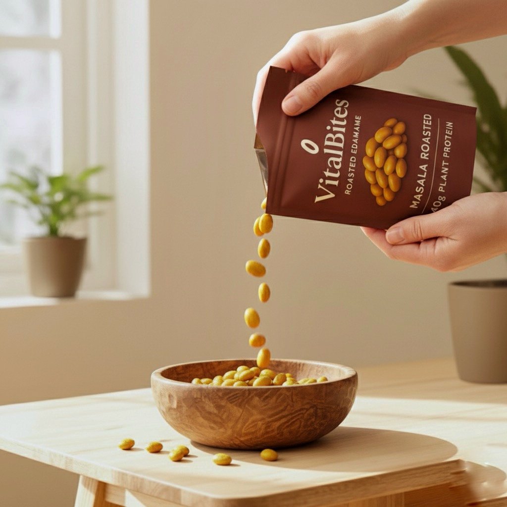 Made for those who crave taste without compromising on health, this snack is 100% vegetarian, high in protein, and completely free from added preservatives. Whether you’re at your desk, on the go, or just taking a mindful break — Masala Roasted Edamame is your perfect companion.